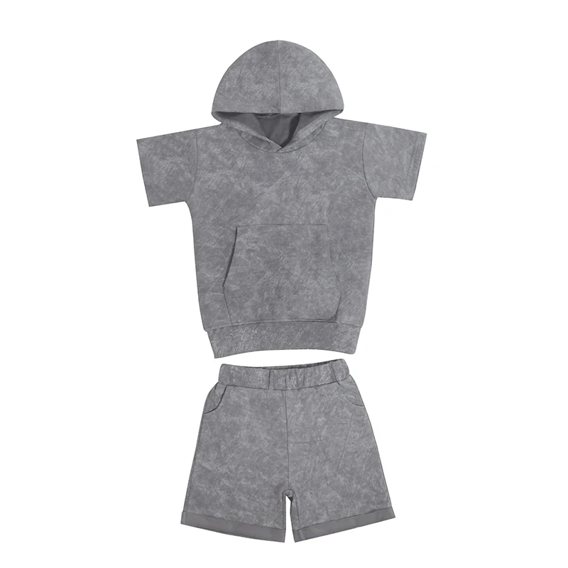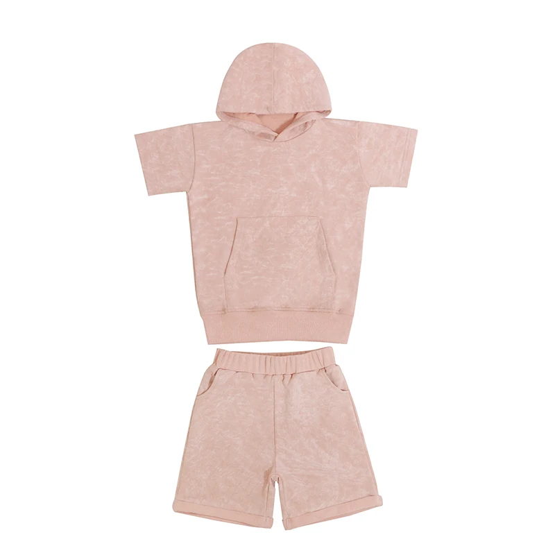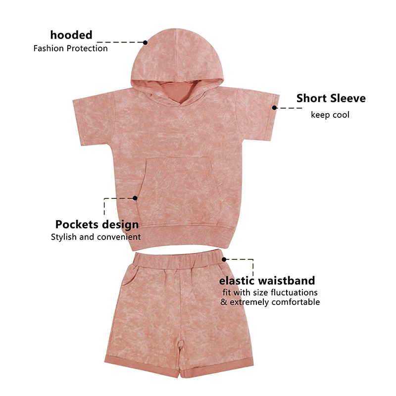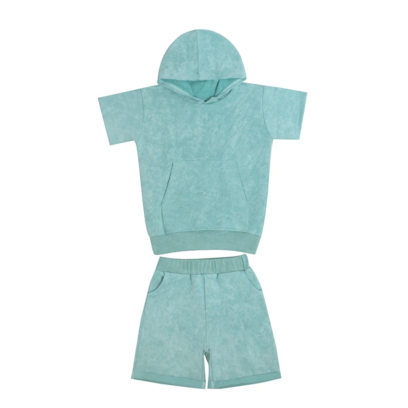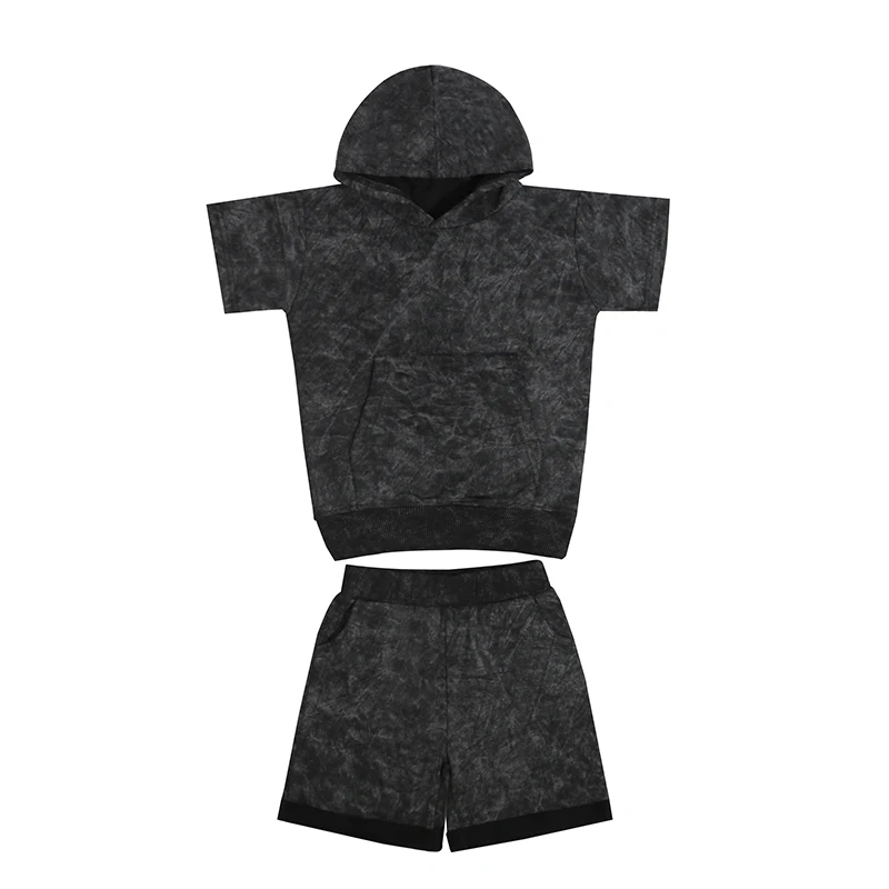 New Designer Trendy Custom Fashion Kids Batik French Terry Hoodie Shorts Sleeves Kids 2 Piece Clothing Set Kids Oversized Hoodie